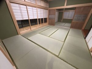 もちろん畳を運ぶ際は、新築の美しい建物に傷をつけることがないよう、最新の注意を払って畳の納品作業をおこないました。