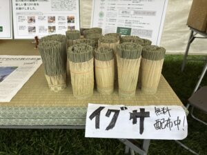 今回のイベントでは、畳に使われるいぐさの端材をクルクル巻いた物をご来場いただいた方々にプレゼントしました。